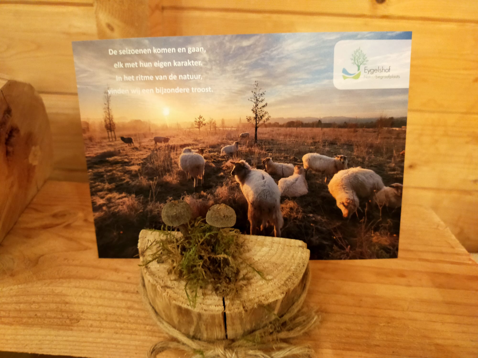 Nach diesem bewegenden Ritual kehrten die Angehörigen zum Empfangsgebäude zurück, wo unsere ehrenamtlichen Mitarbeiter sie herzlich mit Kaffee, Tee oder heißer Schokolade empfingen. Es entstand eine warme, offene Atmosphäre, in der es Raum für Gespräche und Begegnungen gab. Zum Abschluss erhielt jeder Angehörige ein kleines Geschenk, eine Holzscheibe aus dem Eygelshof, liebevoll mit Grün aus der Umgebung dekoriert, versehen mit einer herzlichen Botschaft und einem Foto aus dem Gebiet. Unsere ehrenamtlichen Mitarbeiter standen bereit, um die Angehörigen mit dem E-Car sicher entlang der beleuchteten Wege zu ihren Autos zurückzubringen.