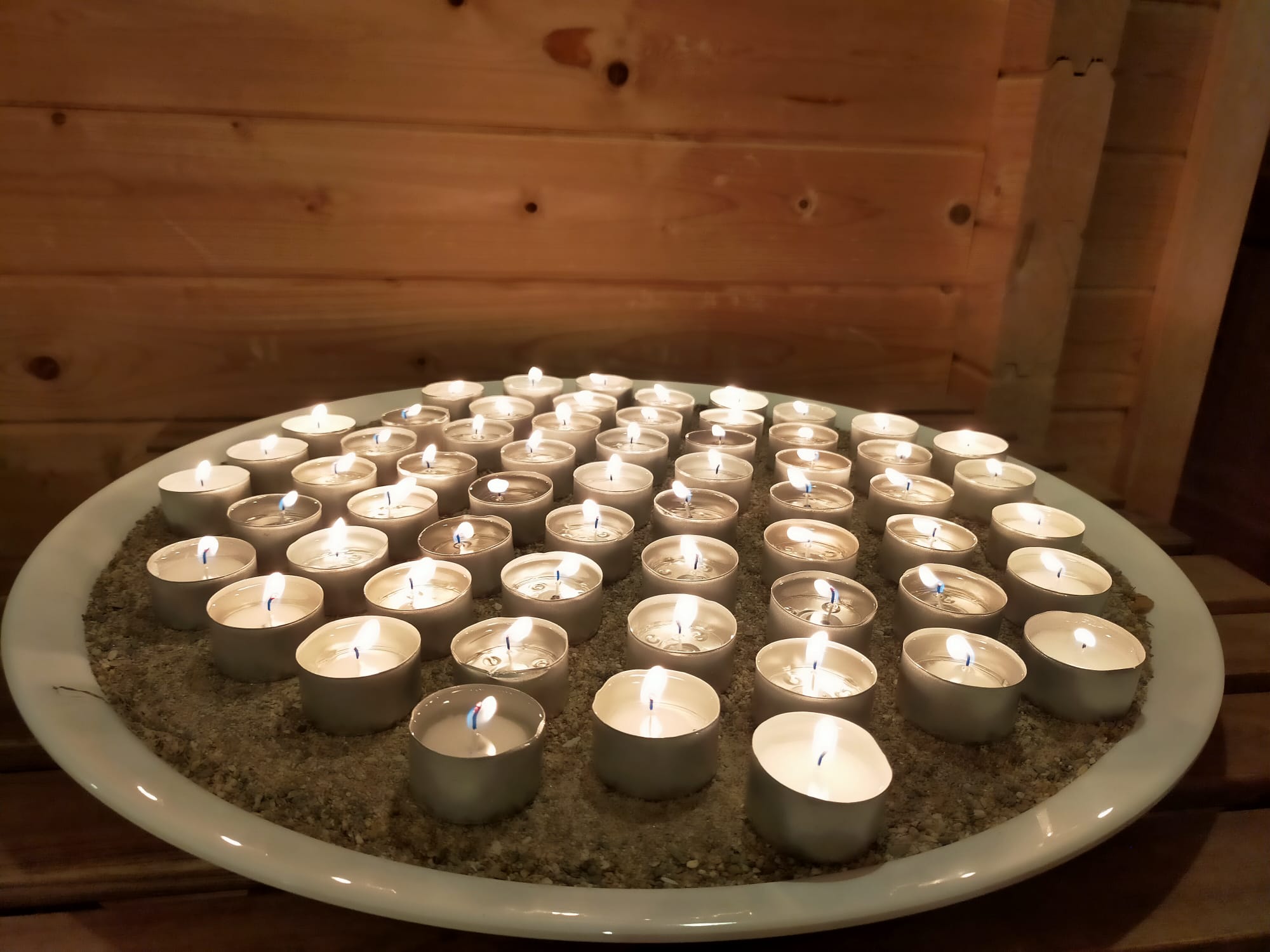 Während der Zeremonie zünden wir für jeden Verstorbenen eine Kerze an und nennen seinen Namen. Es ist ein berühendes Ritual, das uns miteinander, mit dem Ort und mit unseren Verstorbenen verbindet. Anschließend laden wir die Angehörigen ein, ein Teelicht zum Grab ihrer Liebsten zu bringen. In der Dunkelheit, die inzwischen hereingebrochen ist, machen sie sich auf den Weg durch die Natur. Jeder Schritt bringt sie tiefer in ihre Erinnerungen. Diese Erinnerungen lassen uns einen Moment innehalten bei unseren Liebsten und rufen Emotionen hervor.