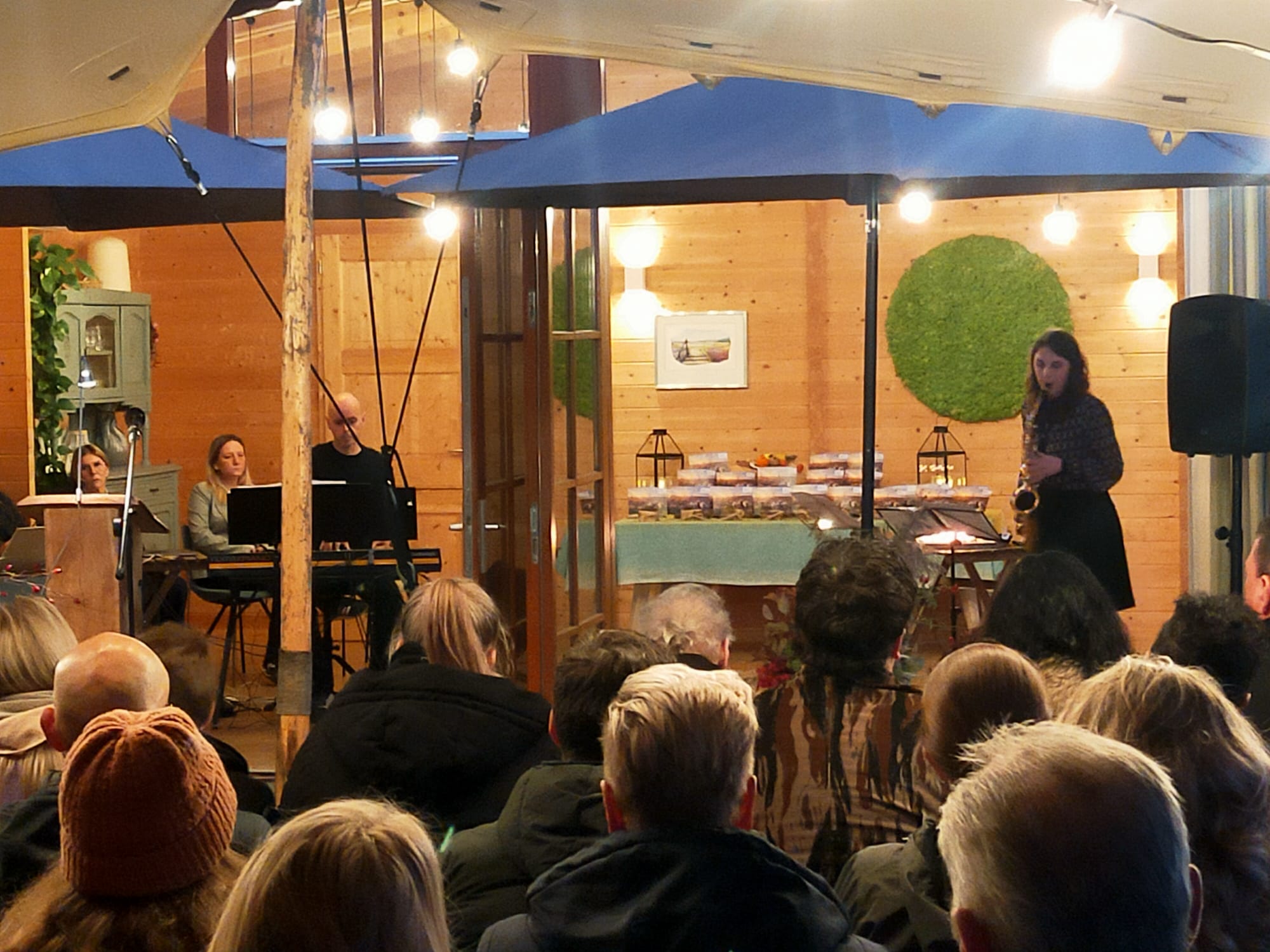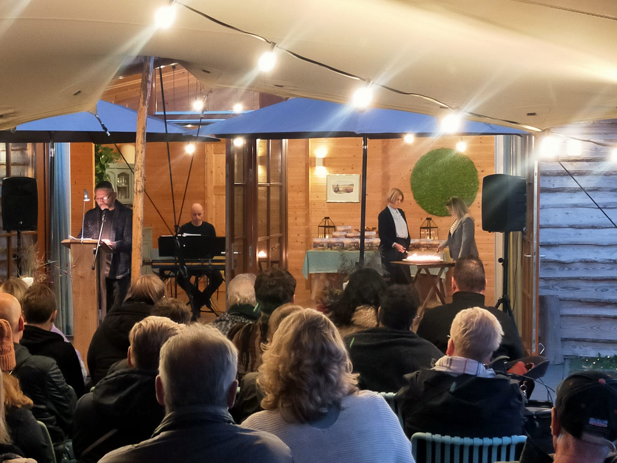 In der Abenddämmerung kamen die ersten Angehörigen den Hügel von Eygelshof hinauf und suchten sich einen Platz unter unserem Zelt. Sanfte Klavierklänge erfüllten die Luft und schufen eine ruhige, besinnliche Atmosphäre. Als alle ihren Platz gefunden hatten und die Kirchenglocke von Eygelshoven siebenmal schlug, erklang plötzlich aus der Ferne ein geheimnisvoller Ton. Alle blickten in die Richtung, aus der die Klänge aus dem Naturgebiet immer näher kamen: es waren die Töne eines Dudelsacks. Schritt für Schritt kam die Melodie näher, bis unser Kollege, der Dudelsack spielt, direkt vor den Angehörigen stand. Ein ergreifender und berührender Moment, der uns daran erinnerte, warum wir an diesem Abend zusammengekommen sind.